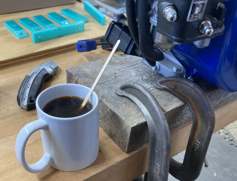 I use machinery like I know what I’m doing. With a slow gentle crawl I pushed him like 20′ and I adjusted the angle as I went. While he spun and steered and faffed about I gradually shifted his truck until it was pointed where he wanted to go (thus negating his desire to steer like a monkey). That’s all it took.