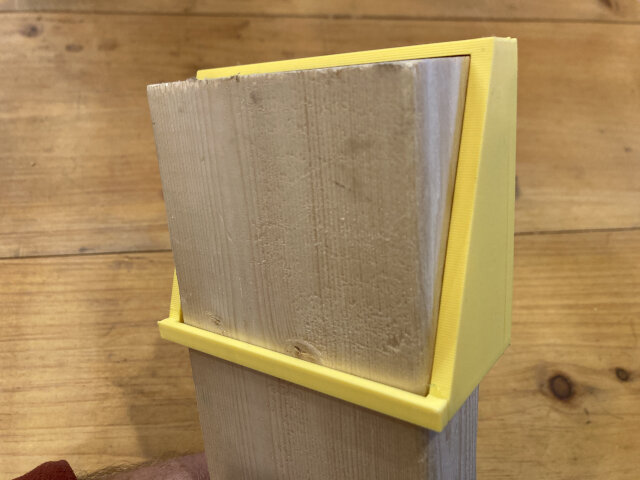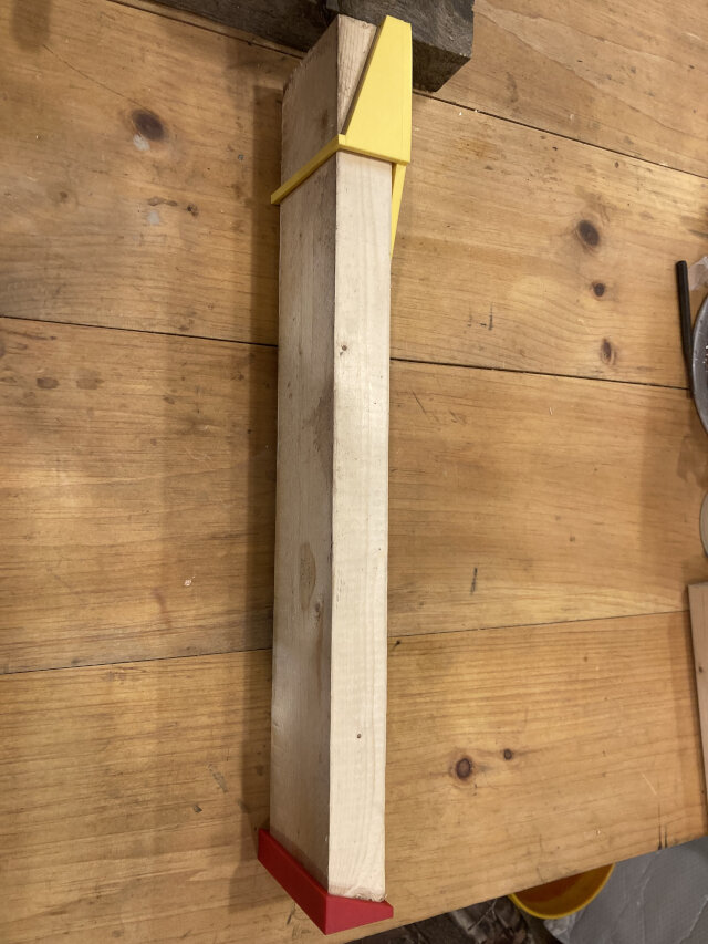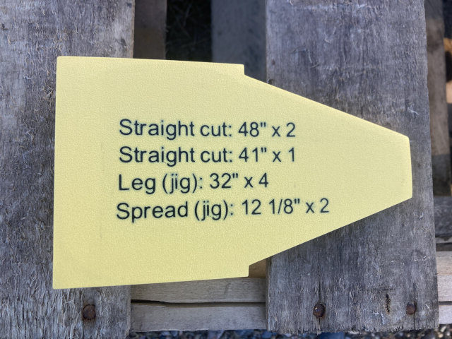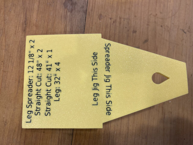 I had to hit pause and rewind a bunch of times to hear the dimensions of 5 pieces of wood (including two angles). I scribbled the details on a Post-It Note, turned off YouTube, and built a sawhorse. It is not that my way of thinking is better, it is that it’s different. Knowing I’d lose the Post-It Note, I made myself a jig that has all the information I could ever want. It has the dimensions of everything, both angles, etc… It’s printed in yellow PLA. I like it.